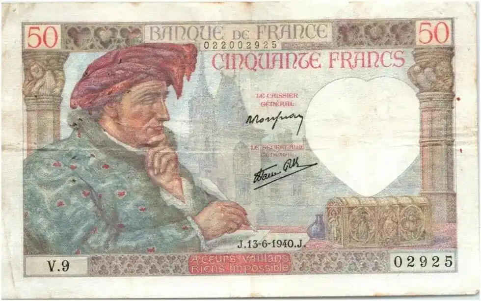 Tendance Billet France 50 Francs Jacques Coeur – 13-06-1940 Série V.9