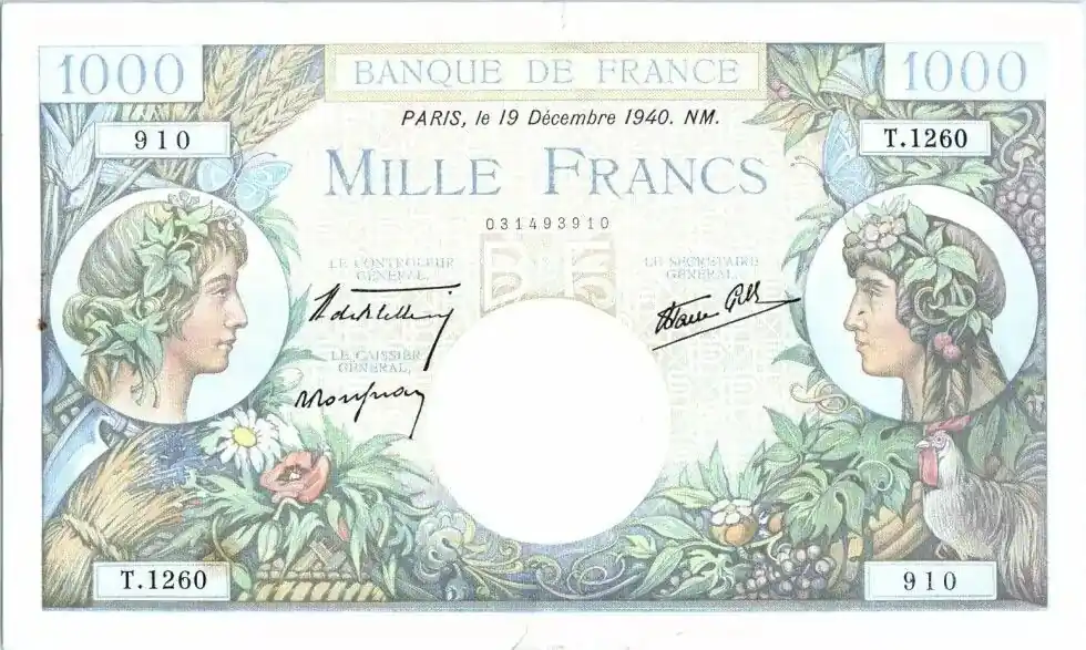 Top Vente Billet France 1000 Francs Commerce et Industrie – 19-12-1940 Série T.1260