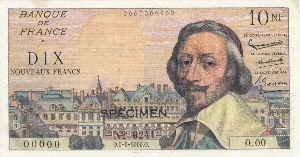 Billet France 10 NF Richelieu – Specimen – 1959 SPL Remise