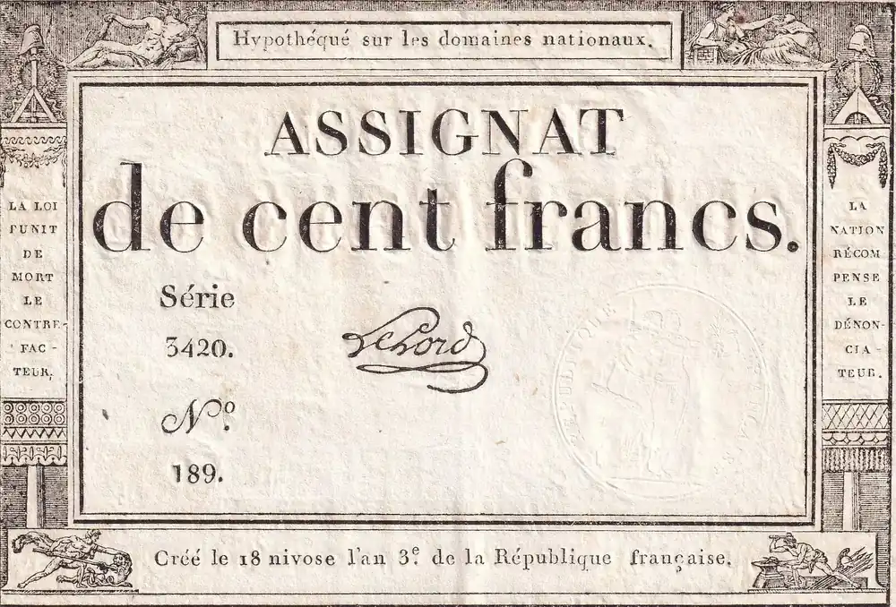 Billet France 100 Francs – 18 Nivose An III – (07.01.1795) – Sign. Lehord – Série 3420 – L.173 Édition Limitée