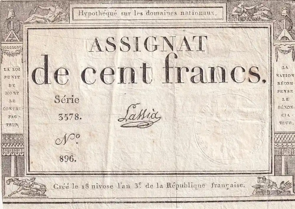Billet France 100 Francs – 18 Nivose An III – (07.01.1795) – Sign. Lassia – Série 3578 – L.173 Original