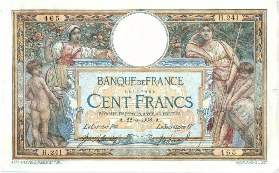 Billet France 100 Francs Luc Olivier Merson – 22-05-1908 Série H.241-465 Quantité Limitée