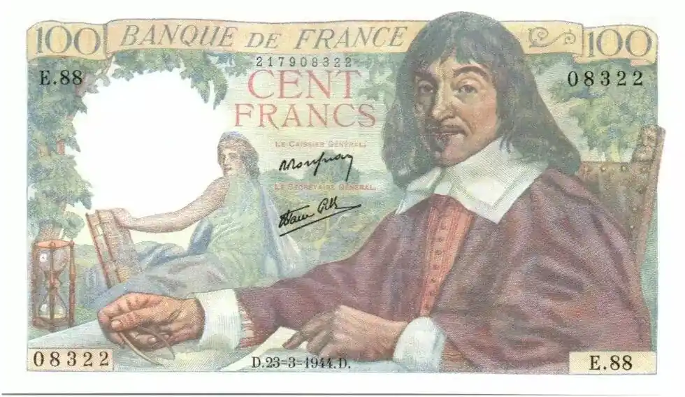 Billet France 100 Francs Descartes – 23-03-1944 Série E.88 Certifié