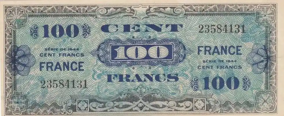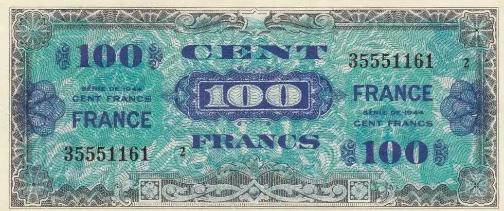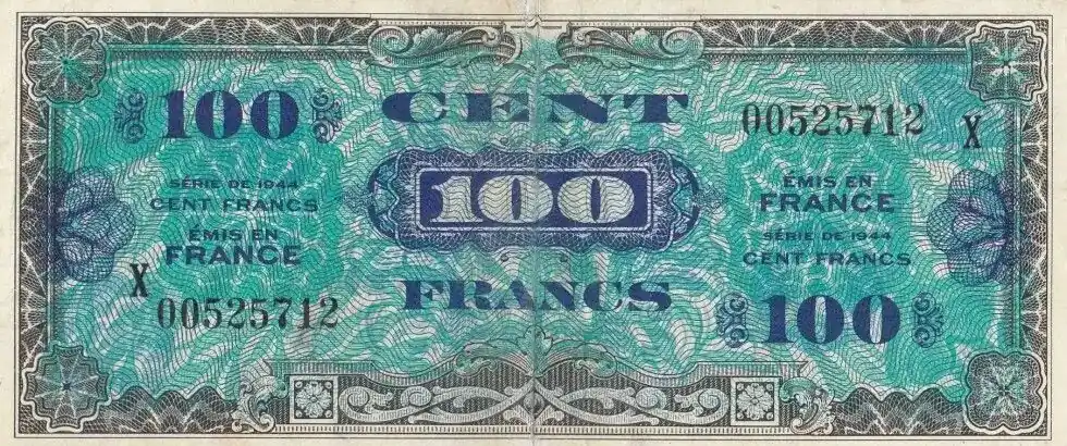 Billet France 100 Francs Impr. américaine (drapeau) – 1944 – Série X Vente Directe