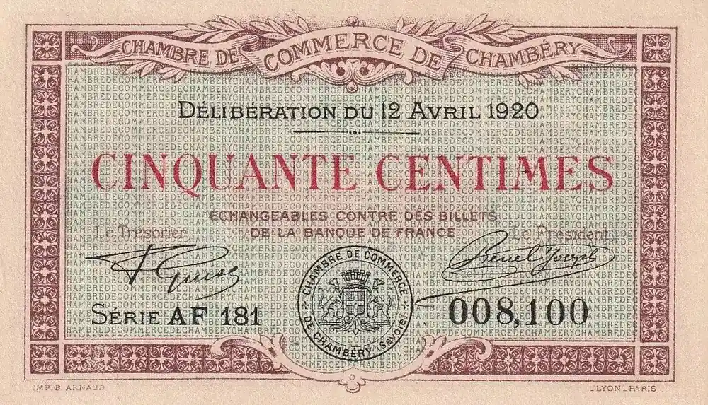 Commander Maintenant Billet France 50 Centimes – Chambre de commerce de Chambéry – Série AF 181 – P.44-12