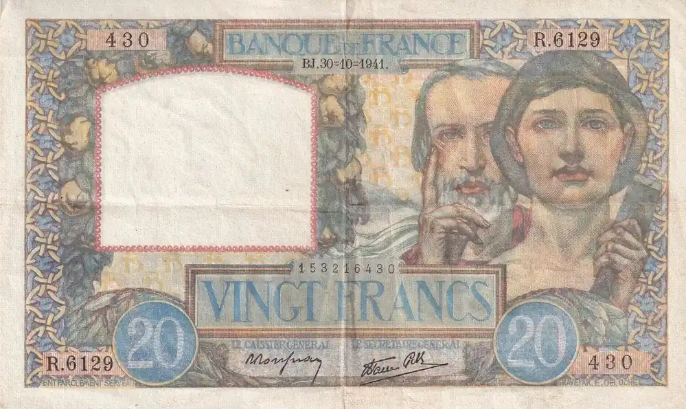 Commander Maintenant Billet France 20 Francs – Science et Travail – 30-10-1941 – Série R.6129- F.12.19