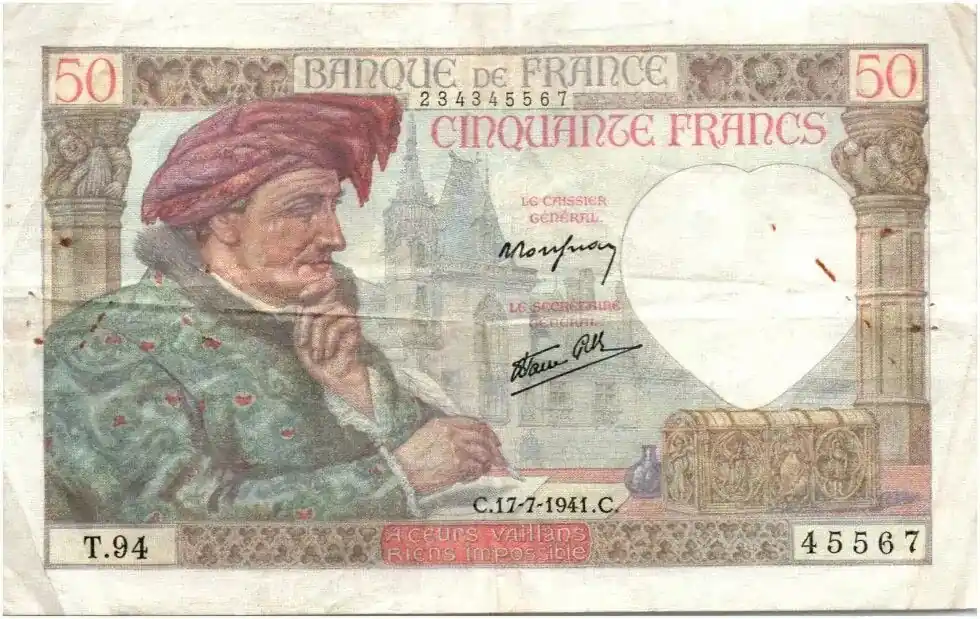 Commander Maintenant Billet France 50 Francs Jacques Coeur – 17-07-1941 Série T.94