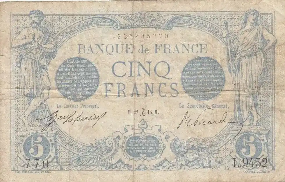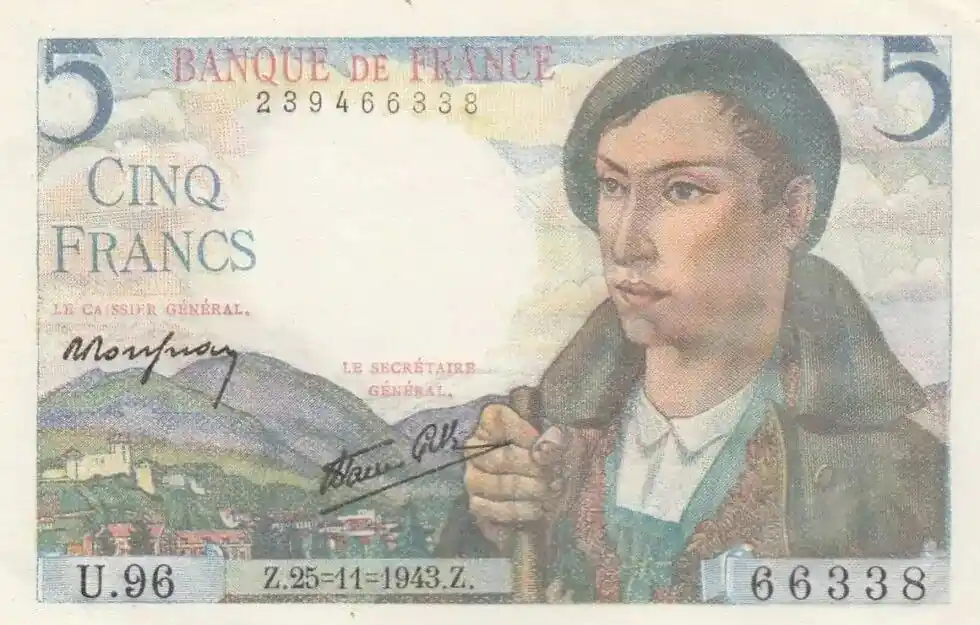 Commander Maintenant Billet France 5 Francs Berger – 25-11-1943 Série U.96