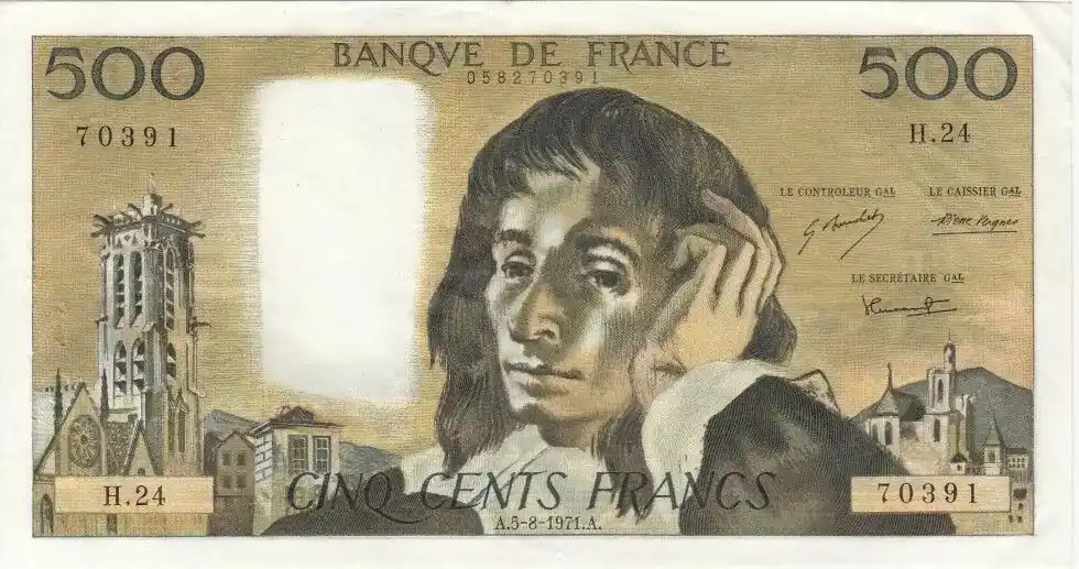 Dernier Modèle Billet France 500 Francs Pascal – 05-08-1971 Série H.24