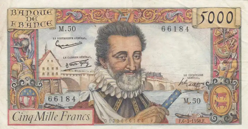 Dernier Modèle Billet France 5000 Francs Henri IV – 06-03-1958 – M.50