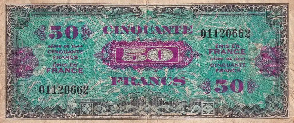 Fait Main Billet France 50 Francs – Drapeau – 1944 – Sans Série – VF.19.01