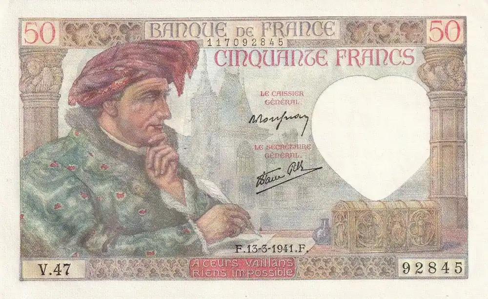 Expédition Rapide Billet France 50 Francs – Jacques Coeur – 13-03-1941 – Série V.47 – F.19.07