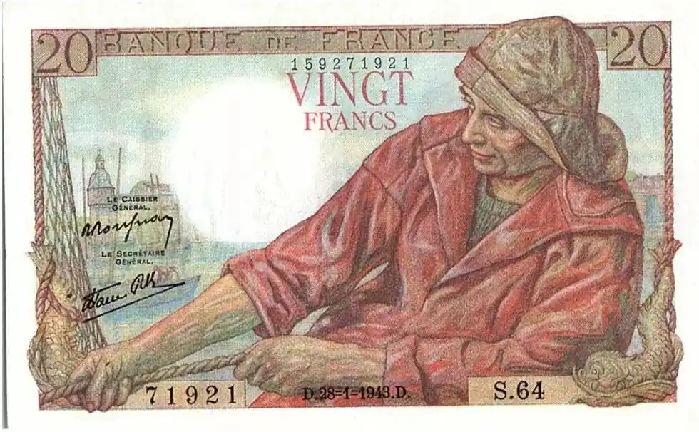 Fait Main Billet France 20 Francs Pêcheur – 28-01-1943 Série S.64