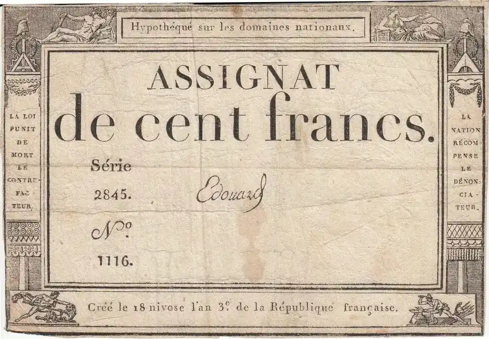 Expédition Rapide Billet France 100 Francs 18 Nivose An III – 7.1.1795 – Sign. Edouard
