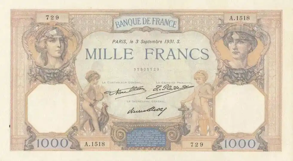Expédition Rapide Billet France 1000 Francs Cérès et Mercure – 12-03-1931 – A.1518