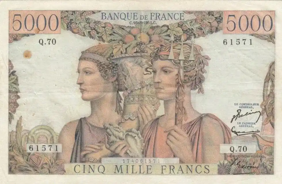 Expédition Rapide Billet France 5000 Francs Terre et Mer – 16-08-1951 Série Q.10