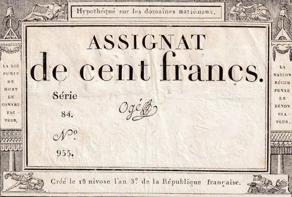 Livraison Mondiale Billet France 100 Francs – 18 Nivose An III – (07.01.1795) – Sign. Ogé – Série 84 – L.173