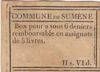 Livraison Gratuite Billet France Sumène Bon de Commune – 1791
