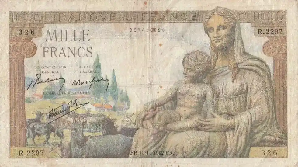 Livraison Mondiale Billet France 1000 Francs Déesse Déméter – 10-12-1942 Série R.2297