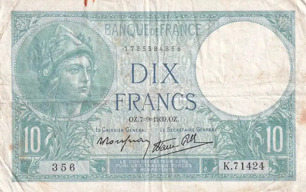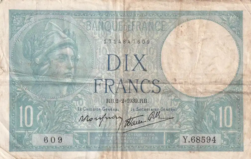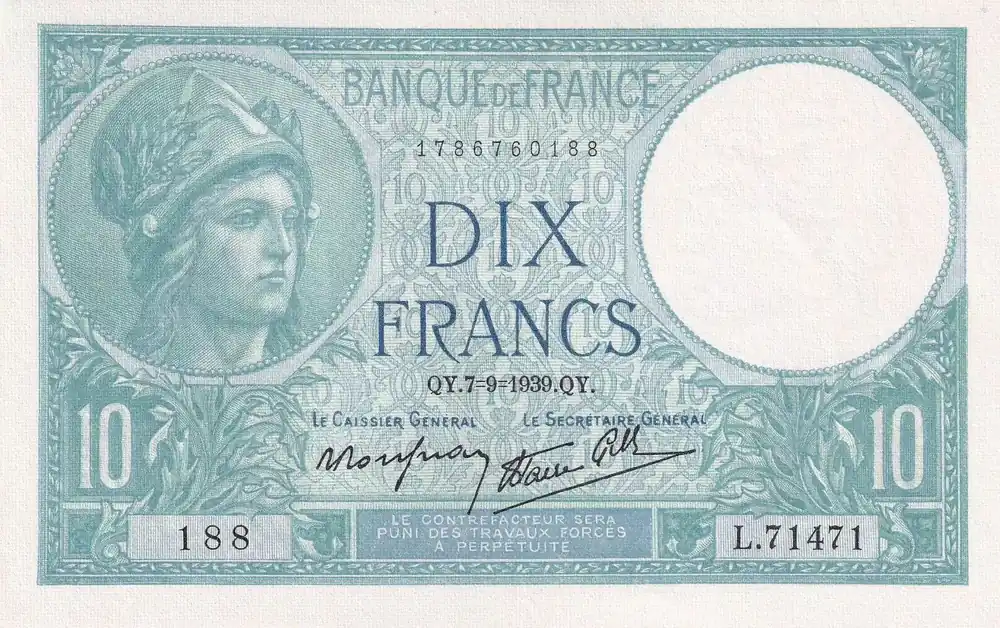Billet France 10 Francs – Minerve – 07-09-1939 – Série F.71424 – F.07.06 Prix Choc