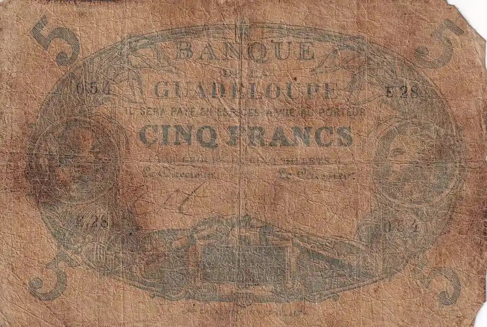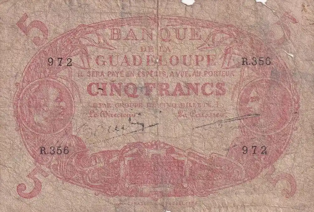 Billet Guadeloupe 5 Francs – Cabasson – Rouge – ND (1945) – Série R.356 – Filigrane Colbert – Kol.103 Réduction