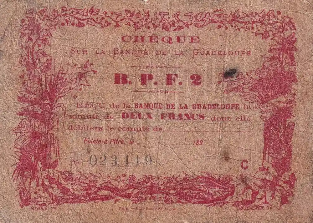 Billet Guadeloupe 2 Francs – Rouge – Chèque – 189? – Kol.170 Promotion