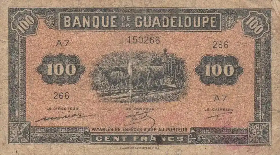 Billet Guadeloupe 100 Francs Charette et Canne à Sucre – Série A.7 – 1942 Vente Flash