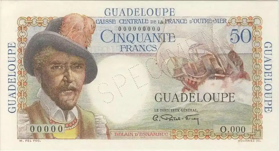 Billet Guadeloupe 50 Francs Belain d’Esnambuc – 1946 Spécimen Haute Qualité