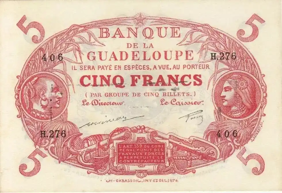 Billet Guadeloupe 5 Francs Cabasson, type 1901 – ND(1944) – H.276-406 Commander Maintenant