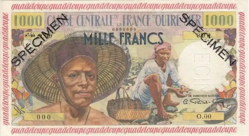 Billet Guadeloupe 1000 Francs Pêcheur – Type 1955 Spécimen n°66 Meilleure Vente