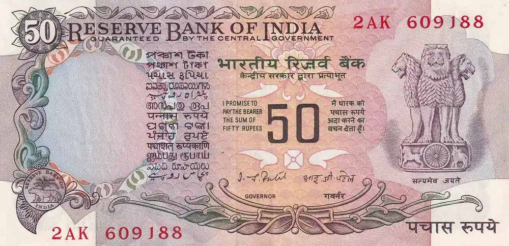 Billet Inde 50 Rupees – Colonne aux Lions – Parlement – 1978 – Série 2AK – P.84 a Certifié