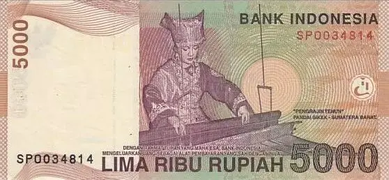 Billet Indonésie 5000 Rupiah -Sasando Rote – Volcan -1992 – Série WSF – P.130 Marque