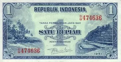 Billet Indonésie 1 Rupiah Plage, montagne – 1951 Satisfait Ou Remboursé