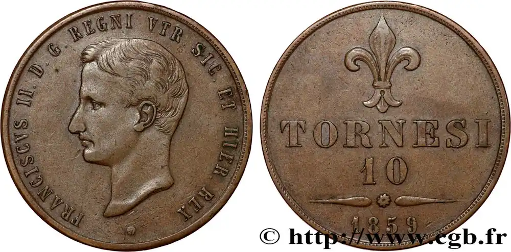 ITALIE – ROYAUME DES DEUX-SICILES – FRANÇOIS II 10 Tornesi 1859 Naples fwo_817568 Monde Dernier Modèle