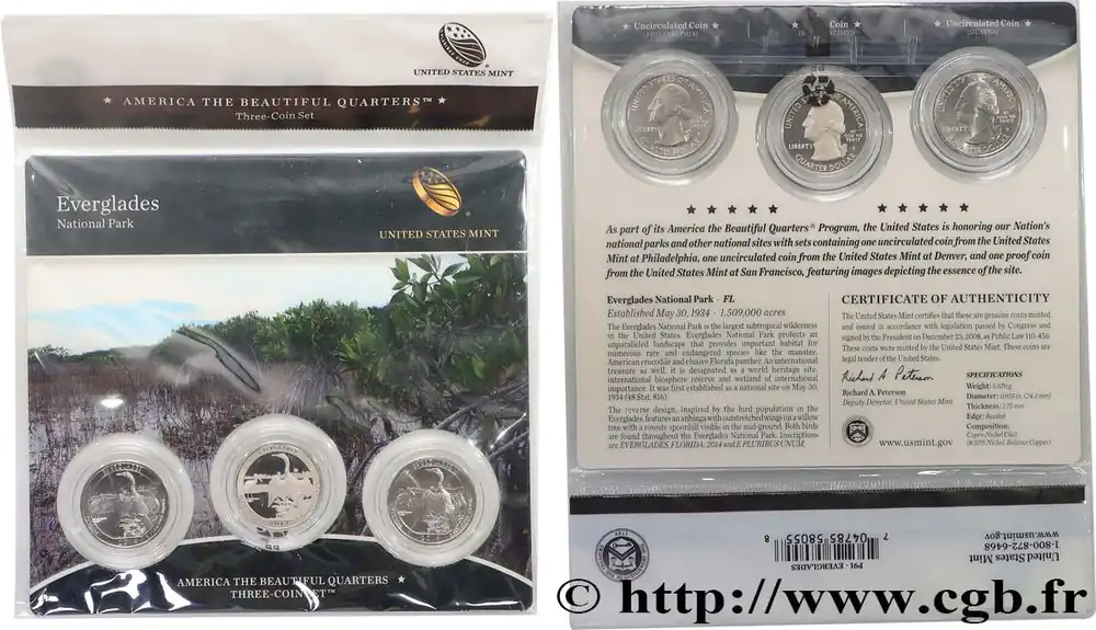 Acheter En Ligne ÉTATS-UNIS D’AMÉRIQUE AMERICAN THE BEAUTIFUL – EVERGLADES – QUARTERS SET – 3 monnaies 2014 fwo_717014 Monde