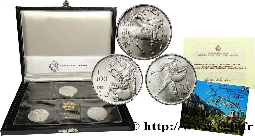 Exclusif SAINT-MARIN Série FDC 3 Monnaies en argent – 2000e anniversaire de la mort de Virgile 1981 Rome fwo_707888 Monde