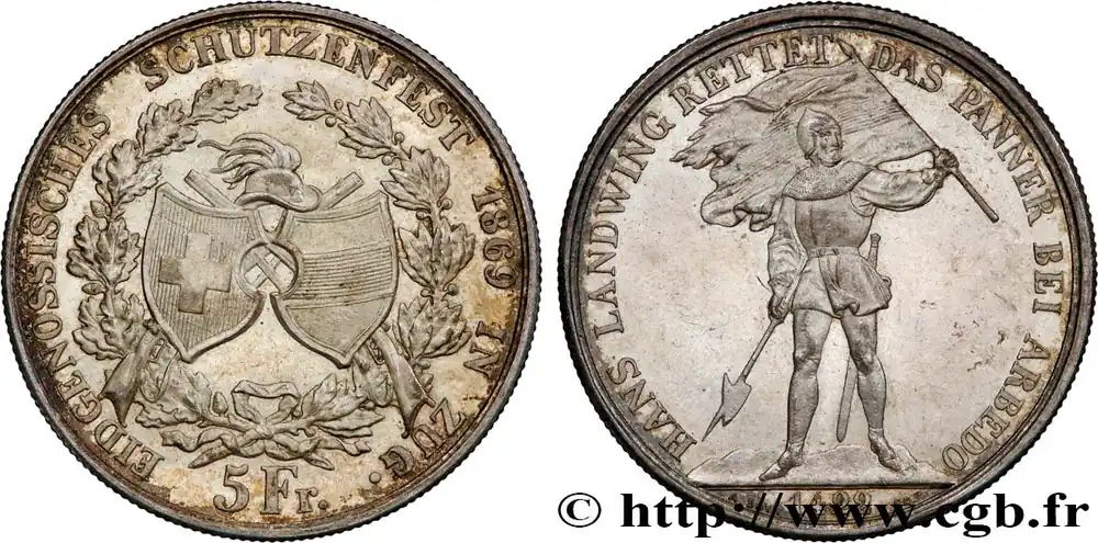 Expédition Rapide SUISSE 5 Francs, monnaie de Tir, Zoug 1869 fwo_722936 Monde