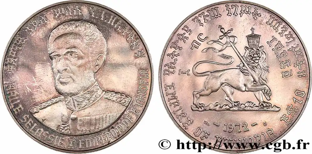 ÉTHIOPIE 10 Dollars Proof Empereur Hailé Selassié 1972 fwo_755990 Monde Retour Gratuit