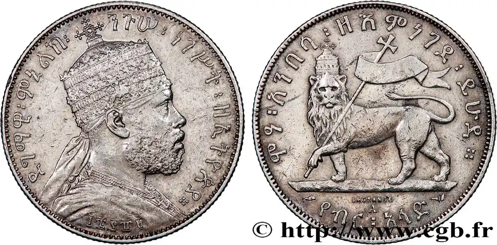 ÉTHIOPIE 1/2 Birr Menelik II EE1889 1897 Paris fwo_760458 Monde Retour Gratuit
