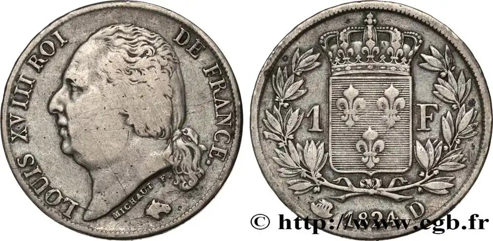 1 franc Louis XVIII 1824 Lyon F.206/58 fmd_560709 Modernes Prix Bas