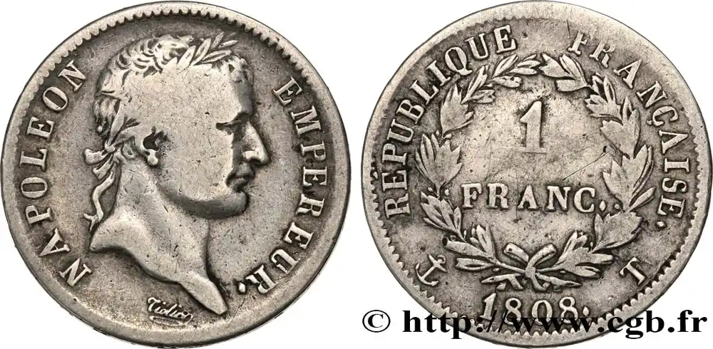 1 franc Napoléon Ier tête laurée, République française 1808 Nantes F.204/13 fmd_560701 Modernes Prix Choc