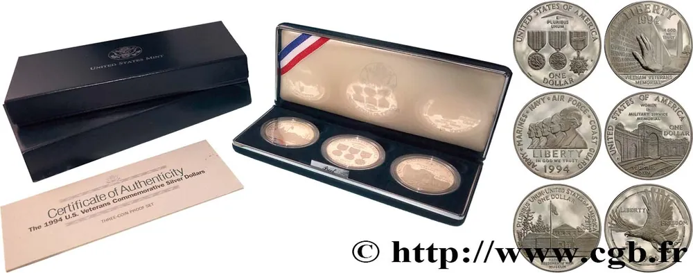 Meilleur Choix ÉTATS-UNIS D’AMÉRIQUE Série Silver 1 Dollar – U.S. Veterans Commerative Silver Dollars – 3 monnaies 1994 West Point fwo_716549 Monde