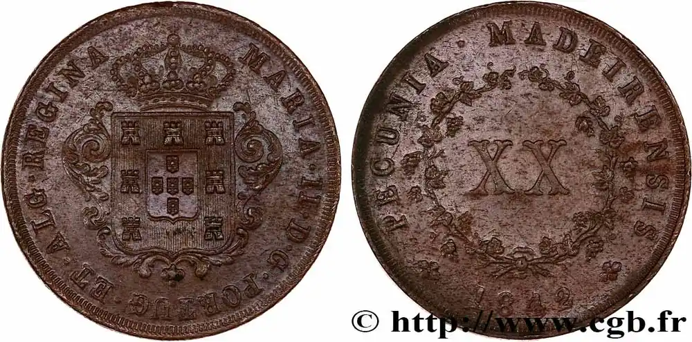 MADÈRE 20 Réis Marie II 1842 fwo_734958 Monde Nouvelle Collection