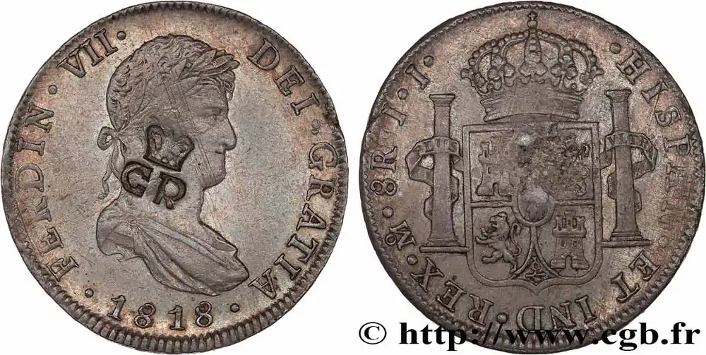 MEXIQUE – FERDINAND VII 8 Reales, contremarque GR couronné 1818 Mexico fwo_764705 Monde Top Vente
