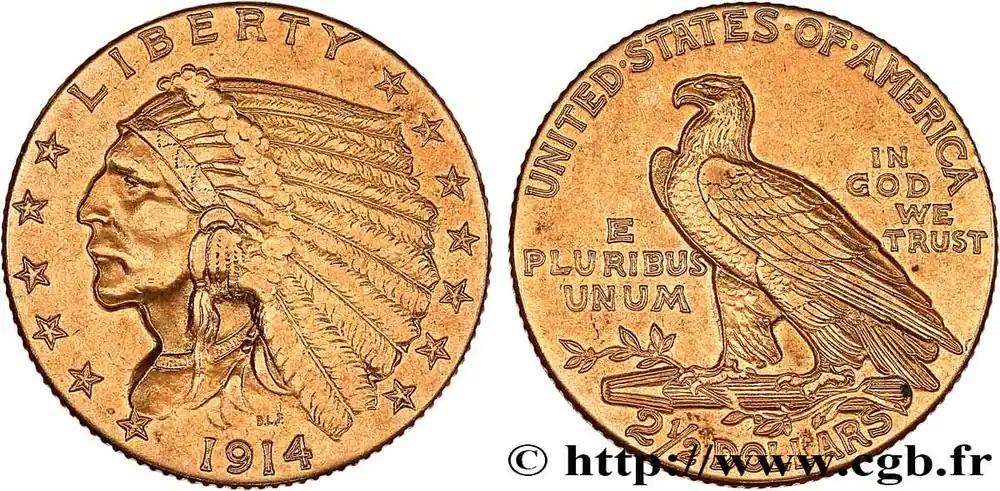 Meilleure Vente ÉTATS-UNIS D’AMÉRIQUE 2 1/2 Dollars or (Quarter Eagle) type “tête d’indien” 1914 Philadelphie fwo_769605 Monde
