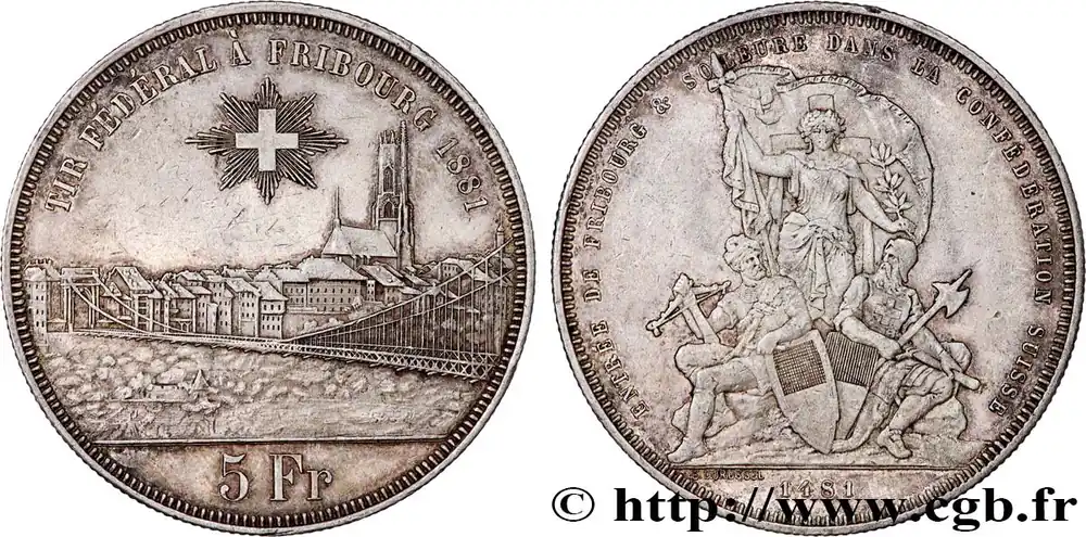 Meilleur Choix SUISSE 5 Francs, monnaie de Tir, Fribourg 1881 fwo_774126 Monde