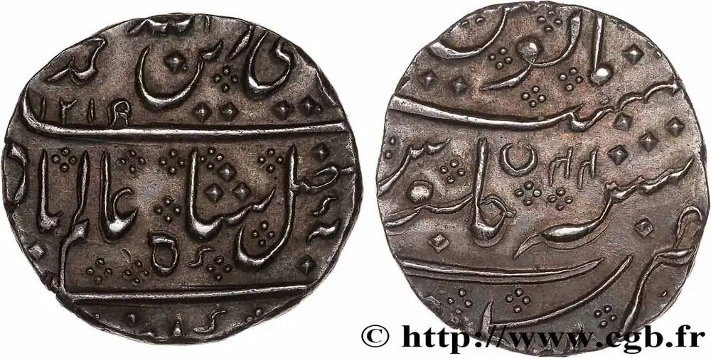 INDES FRANÇAISES – COMPTOIR DE PONDICHÉRY – CHAH ALAM II Roupie d’Arcate AH 1219/44 1804 Pondichéry fwo_775621 Monde Livraison Mondiale