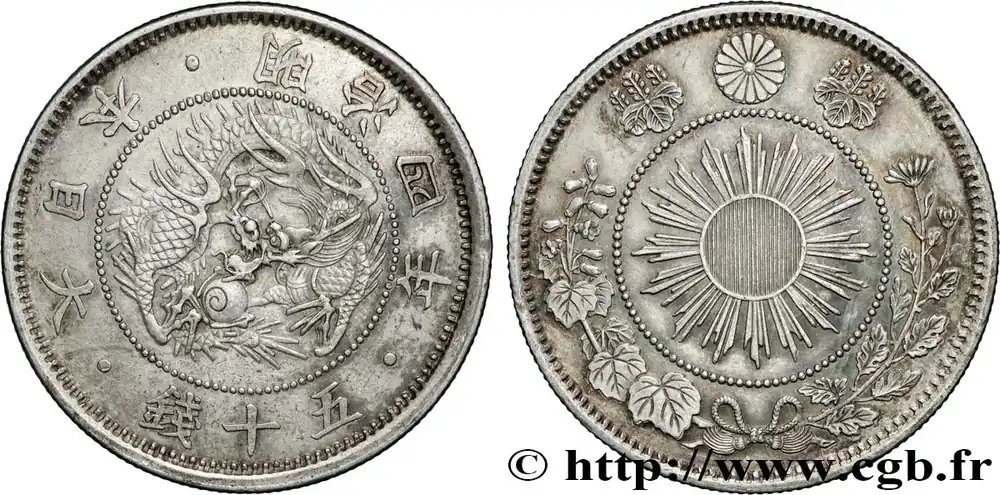 Exclusif JAPON 50 Sen dragon an 4 ère Meiji (Mutsuhito) 1871 fwo_860315 Monde