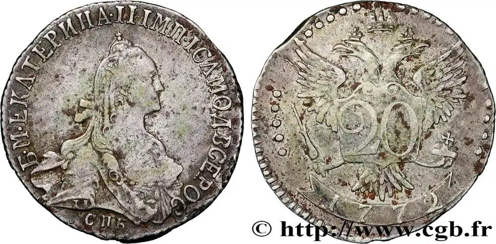 Garantie Incluse RUSSIE – CATHERINE II 20 Kopecks 1772 Saint-Petersbourg fwo_865604 Monde