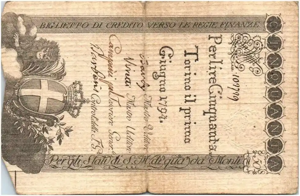 Billet Italie 50 Lire Lion – 01-06-1794 – 109799 Commande En Gros
